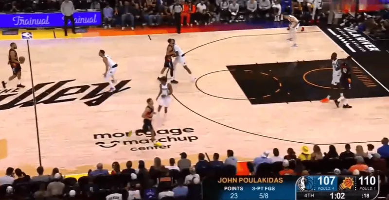 比赛第四节,普拉基达斯晃开空间三分命中,三分8中5砍下23分。