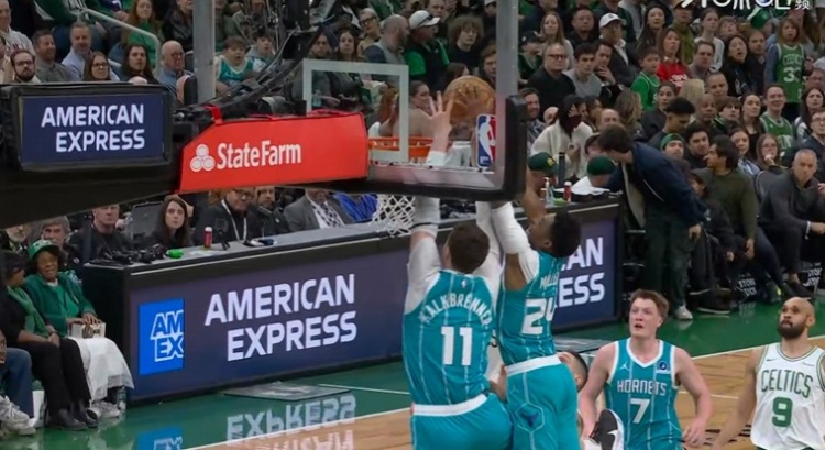 抢着吃饼!克尼佩尔抛传米勒与卡尔克布伦纳同时起跳完成空接得分